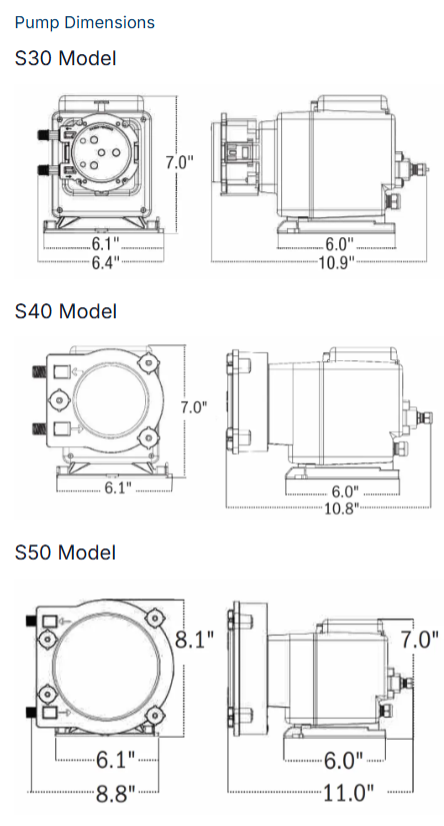 • Pump Head Thumb Screws (S40, S50): Stainless steel and PVC